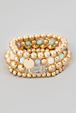 Stretch Beaded Layering Rhinestone Bracelet Set in Mint