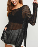 Suki Long Sleeve High-Low Hollow Sweater Top (Assorted Colors)