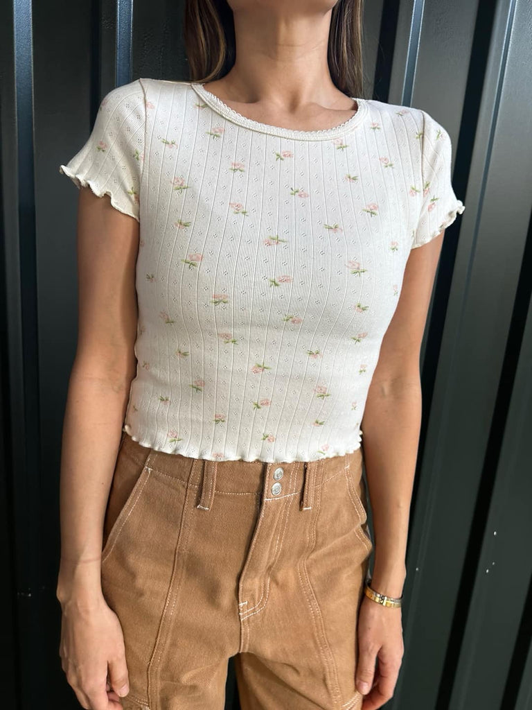 Add a touch of charm with this adorable lettuce trim top! Featuring a soft, stretchy fit and dainty details, it’s the perfect blend of sweet and stylish. Your go-to for effortless everyday cuteness!