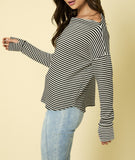 Tatum Off Shoulder Striped Long Sleeve Top in Ivory/Black