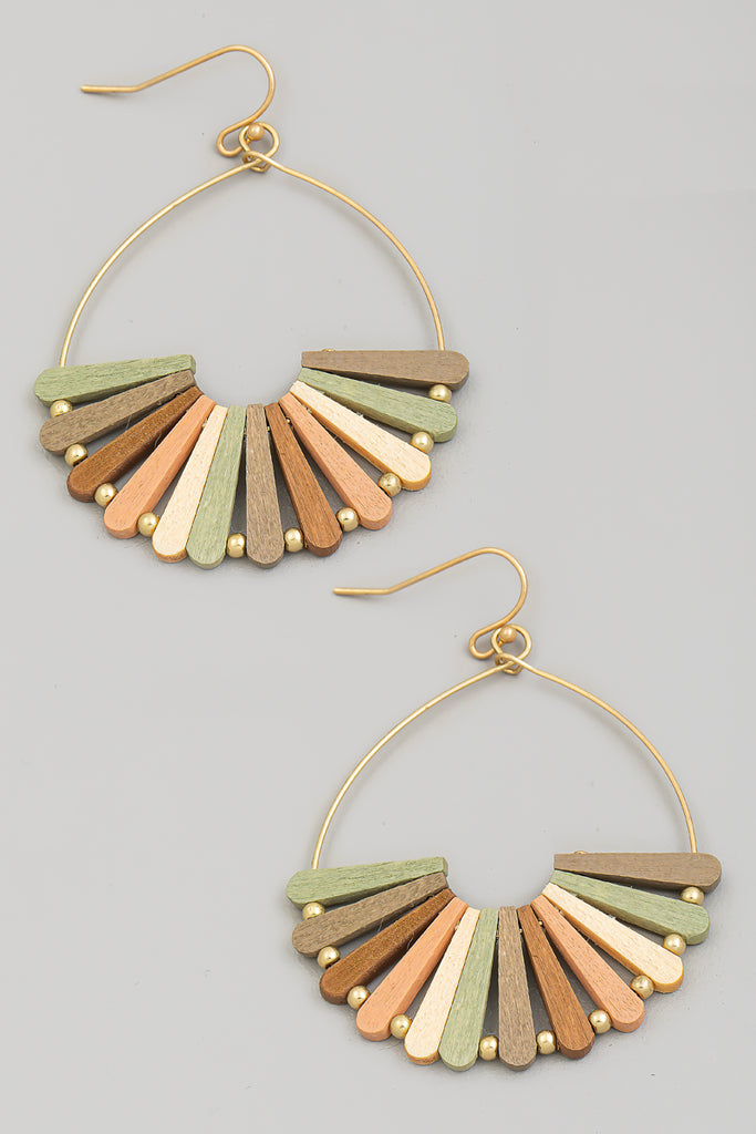 Wooden Fan Teardrop Fish Hook Earrings in Multi/Gold