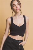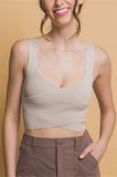 This playful cropped ribbed tank top features a stylish crossover design on the front, adding a fun twist to your casual wardrobe. Perfect for layering or wearing solo, it brings a flirty edge to any outfit while keeping comfort front and center.