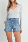 Step into summer fun with the Butter Cup Denim Short! These high-waisted, light wash shorts bring a fresh twist with handy utility pockets right up front—perfect for stashing your essentials while keeping your hands free. Their flattering fit and casual vibe make them your go-to for sunny days and spontaneous adventures.