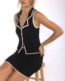 Sleek, stylish, and effortlessly chic—this black knit cream trimmed skirt set is a match made in heaven! With its perfectly tailored trim and cozy knit feel, it’s a go-to for any season. Dress it up with heels or keep it casual with sneakers for a look that’s all about luxe comfort!