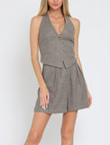 City Girl Halter Vest and High Waisted Shorts Set in Grey