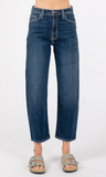 Deep Dive Denim takes you straight to the bottom of cool with a rich, dark wash that's anything but boring. These barrel jeans hug your curves in all the right places, then flare out at the ankle for that effortless, vintage-inspired vibe. The deep indigo tone pairs with everything in your closet—dress them up with heels or keep it casual with sneakers. Built to last through countless washes, they're the denim equivalent of a best friend who always has your back.