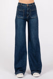 High Rise Patch Pocket Wide Leg Dark Denim LTJ