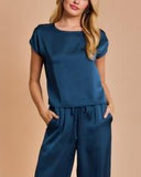 Slip into the effortless elegance of this satin short sleeve slip top!!