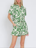 Fresh as a breeze! This short sleeve belted romper brings effortless charm, perfect for sunny days and weekend adventures.