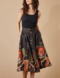 Jungle Chic Satin Elastic Waist Flowy Midi Skirt