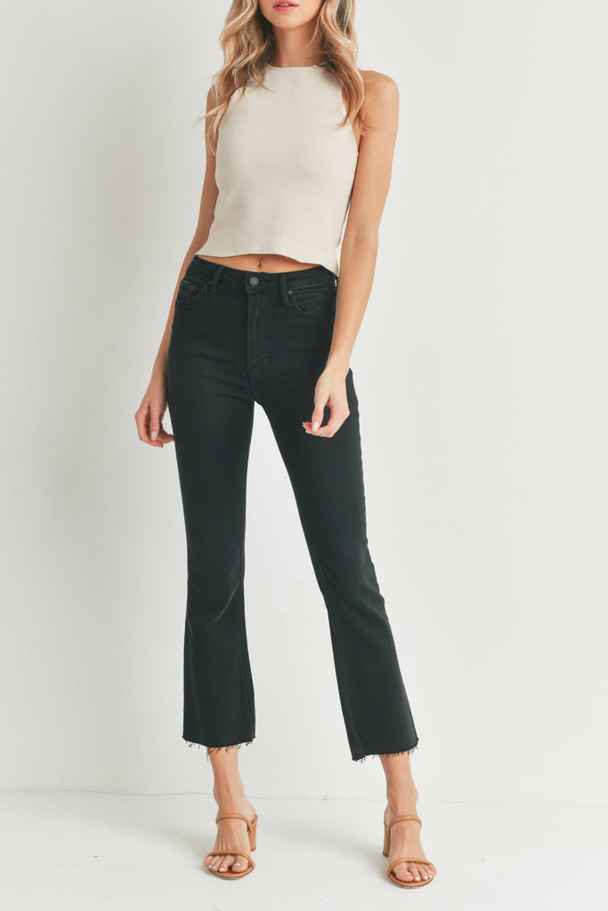 Kick Flare Raw Edge High Rise Denim Jeans In Black By LTJ