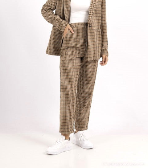 Preppy Plaid Elastic Waist Business Trouser Pant (Part of a Set)