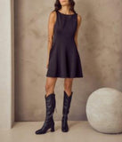 This chic boat neck mini dress is all about effortless elegance! With its sleek silhouette and sleeveless design, it's perfect for making a statement at any event. Dress it up or down for a runway-ready look!