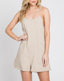 So Much Comfort Spaghetti Strap Short Romper in Oatmel