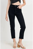 The high waisted black skinny jean that you have been waiting for!! Soft black denim that hugs the body perfectly with a chic button front detailing that has a parisian vibe.