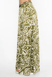 Verdant Gleam Paisley Printed Satin Wide Leg Pants