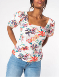 Night Daisies Floral Smocked 3/4 Cinched Sleeve Top