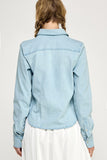 Washed Elegance Collared Button Down Tencel Denim T-Shirt