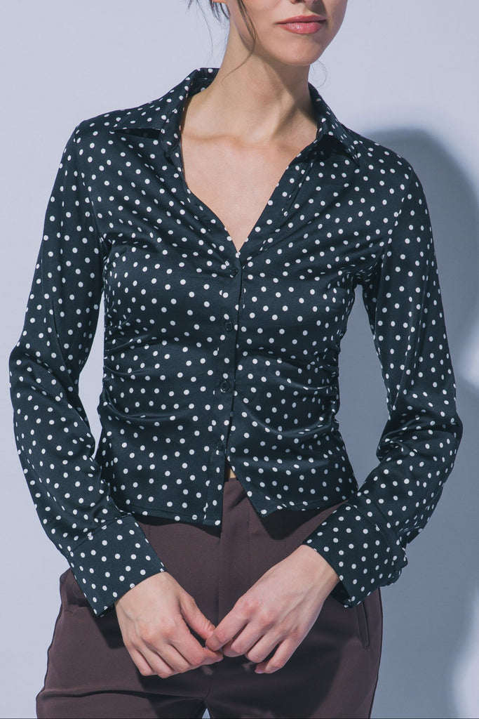 Polished with a playful twist, the Dot the Line Top brings timeless charm to your everyday wardrobe. Designed with a flattering, softly gathered front and a silky feel, it drapes beautifully while enhancing your natural shape.
