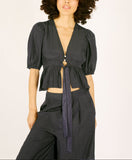 Mariposa Tie-Front Button Detail Crop Top in Navy