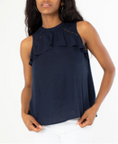 Rock the night away in our Midnight Lace Sleeveless Ruffle Top. Featuring a midnight lace design and playful ruffle detail, this top will add fun and flare to any outfit. Perfect for a night out with friends or a date night with your significant other!!