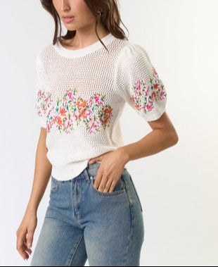 Threaded Florals Embroidered Puff Short Sleeve Top
