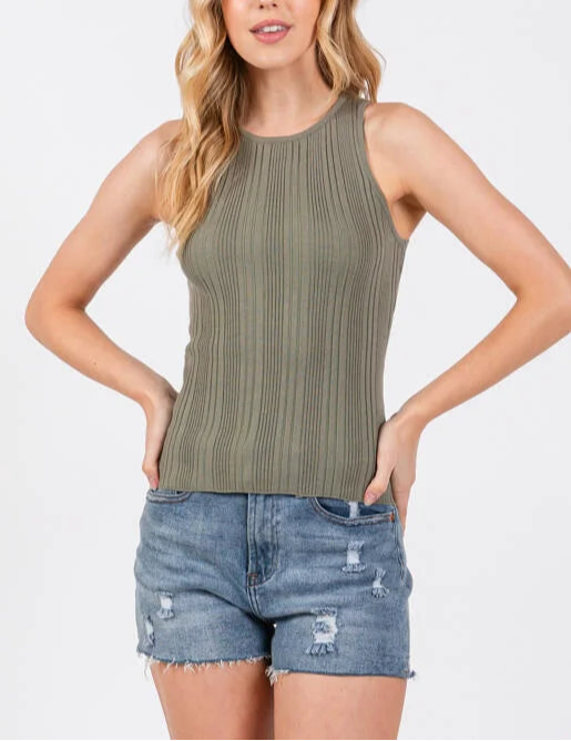 Toni Round Neck Variegated Ribbed Tank