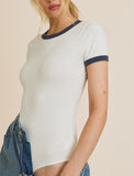 Casual Fit Contrast Detail Short Sleeve Bodysuit