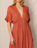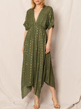 Glimpse of Gold V-Neck Short Sleeve Midi Dress (Assorted Colors)