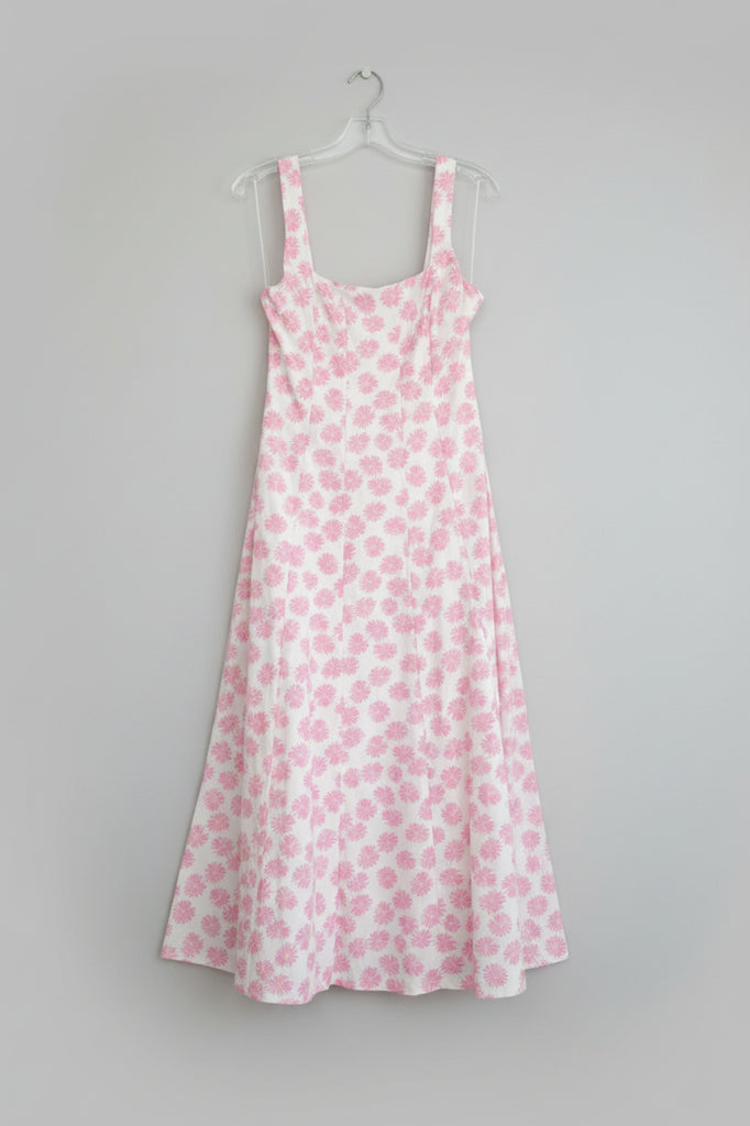 Embrace effortless elegance with this charming pink dress with delicate floral details. Perfect for warm-weather occasions, the soft hue and botanical print create a romantic, feminine aesthetic that transitions seamlessly from daytime gatherings to evening events.